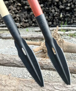 Both straight & serrated edges are sharp, with the straight edge capable of further sharpening to a razor likeness, which is key for hunting spears to both penetrate deeply and to cause severe internal organ damage.
