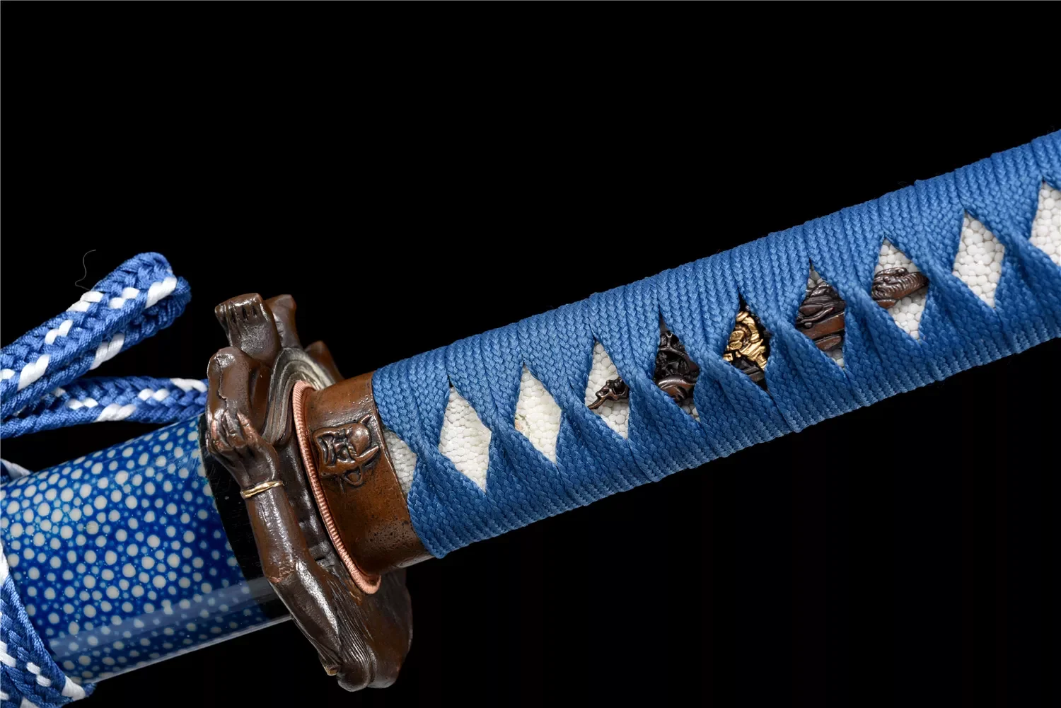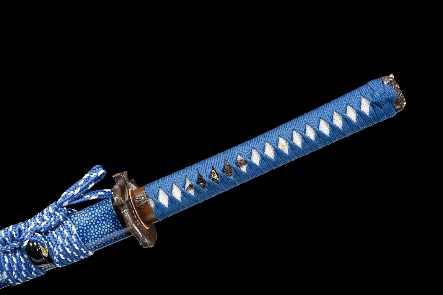 - Tsuka (handle) material: Hardwood, wrapped with genuine stingray-skin Samegawa & quality cord Ito (handle-wrap).