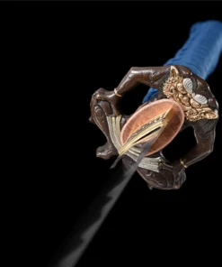 Completed with a lacquered hardwood, partially wrapped in real stingray-skin scabbard, along with solid brass sword fittings – with many decorations plated in genuine gold & silver, and a hardwood, wrapped with real stingray-skin & quality cord handle, forming a traditional, practical and effective Japanese Samurai hand-grip.