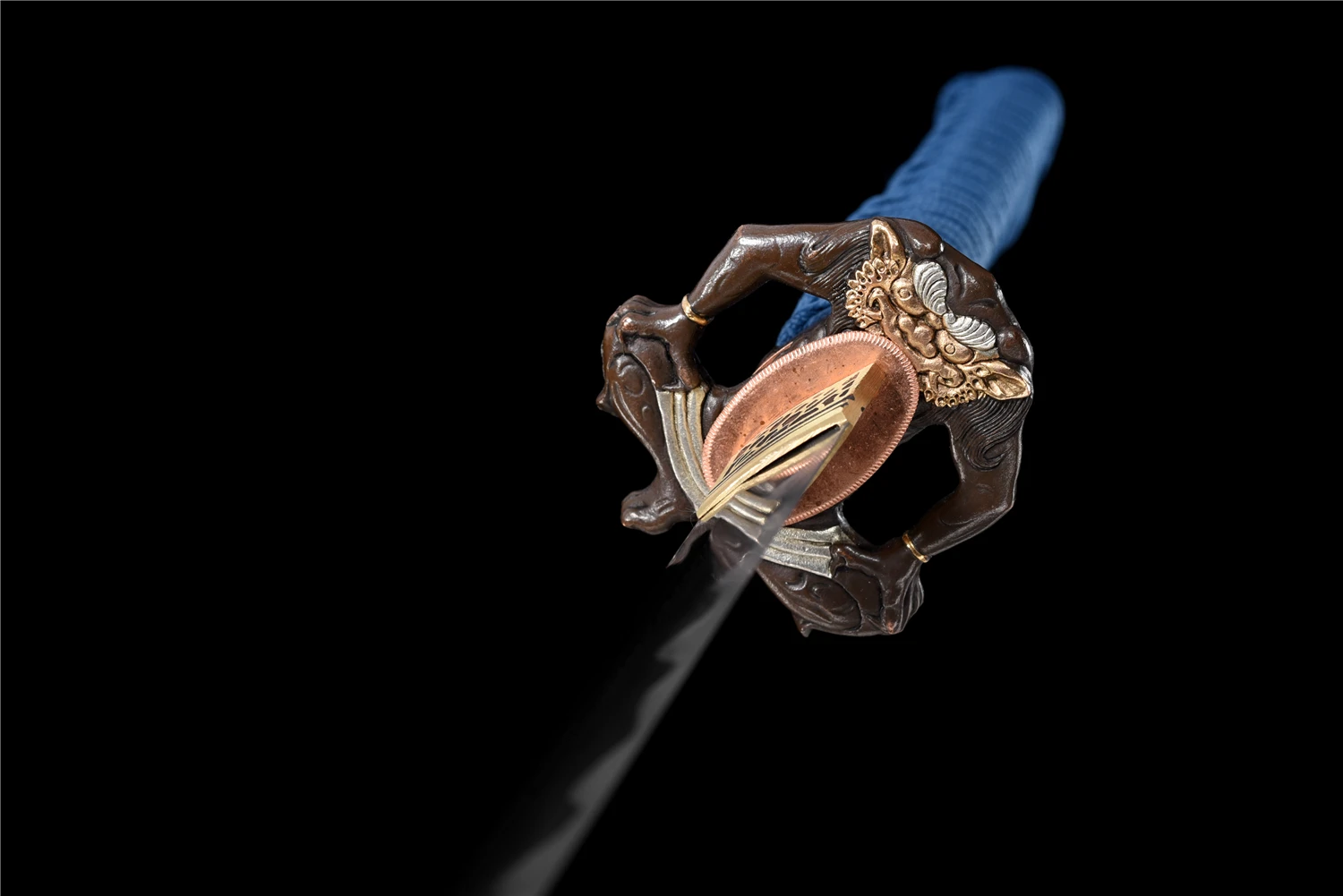 - Sword-fittings material: Brass, with many decorations plated in genuine silver & gold.