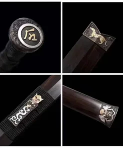 Completed with a beautiful Ebony hardwood scabbard, solid brass sword fittings – with many illustrations plated in real gold & silver, and a hardwood handle, wrapped with quality-cord handle, forming a traditional, practical and effective hand-grip.