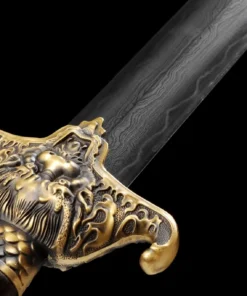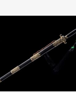 Equipped with a folded steel blade, which is a hammer-welded mixture of 1095 & 1060 high carbon steel, manganese spring steel, 1045 soft steel and many more smaller portions of other steels. This mixture is then folded multiple times to remove impurities, creating many hundreds of individual steel layers, finally producing arguably the best sword-making steel available.