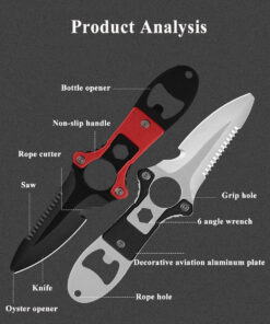 This lightweight diver knife can be used for any underwater activity, including use as a rescue knife, spearfishing knife, diver utility and more.