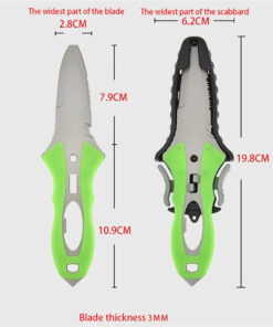 This professional diver knife can be used for any underwater activity, including use as a rescue knife, spearfishing knife, etc.