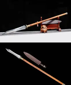 Included with a practical scabbard, constructed with solid brass fittings and a tough Suanzhi hardwood handle, forming an overall sturdy, fully battle-ready spear weapon.