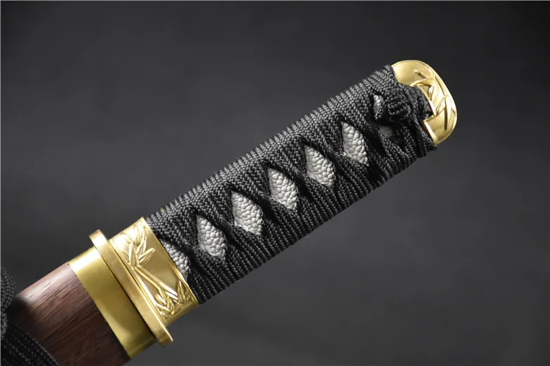 - Tsuka (handle) material: Rosewood, wrapped with genuine stingray-skin Samegawa & quality-cord Ito (handle-wrap).