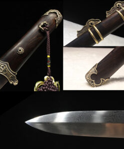 ZSHY-HWGDJ Overall length:51.5cm Weight:800g,550gs no scabbard. Blade:32cm length*3.5cm width*6mm thickness Folded steel blade, after heat treatment , hardness about 35 hrc ,to clay tempered , extra fee +$33.5/per, after clay tempered , hardness about 55-58hrc. Ebony wooden scabbard and handle , handle length 14.5cm Brass metal fittings . Packing :wooden box with sword certification.