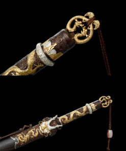 Completed with an Ebony hardwood scabbard, pure copper sword fittings – with many illustrations plated in real gold & silver, and an Ebony, wrapped with pure-copper handle, forming a traditional and effective hand-grip.