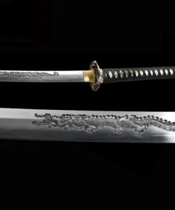 Beautifully completed with a gloss-lacquered scabbard with buffalo-horn inserts + real sea-shell dragon inlay, along with brass sword fittings – many of which are plated in real gold & silver, and a hardwood, wrapped with genuine stingray-skin & quality cord handle, forming a traditional, practical and effective Japanese Samurai hand-grip.