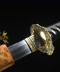 Prominently themed with the gold dragon, this Japanese dragon Samurai sword is a very powerful and formidable statement, representing the most celebrated of all mythological god-beasts, famous not only within Japanese Samurai society, but also widely revered throughout the greater far east.