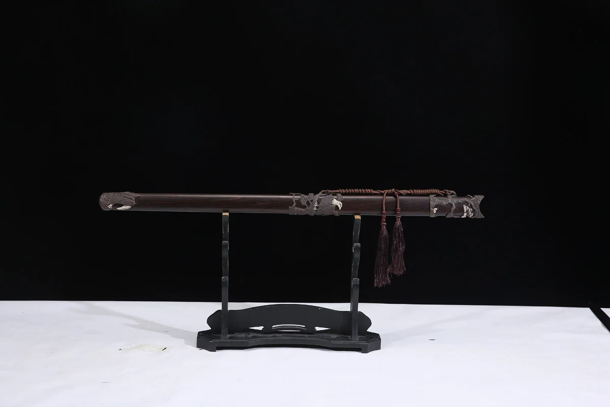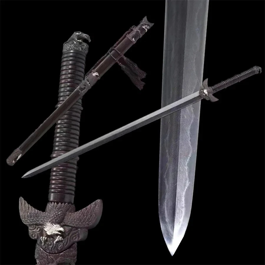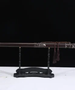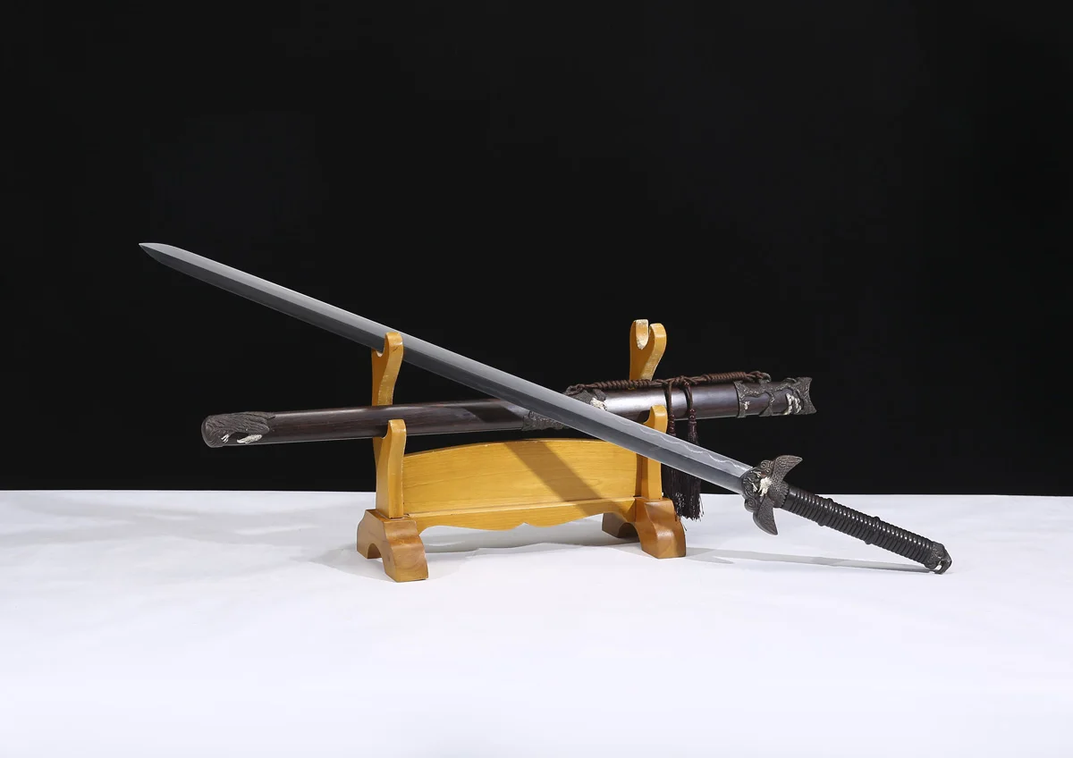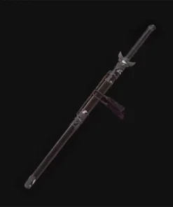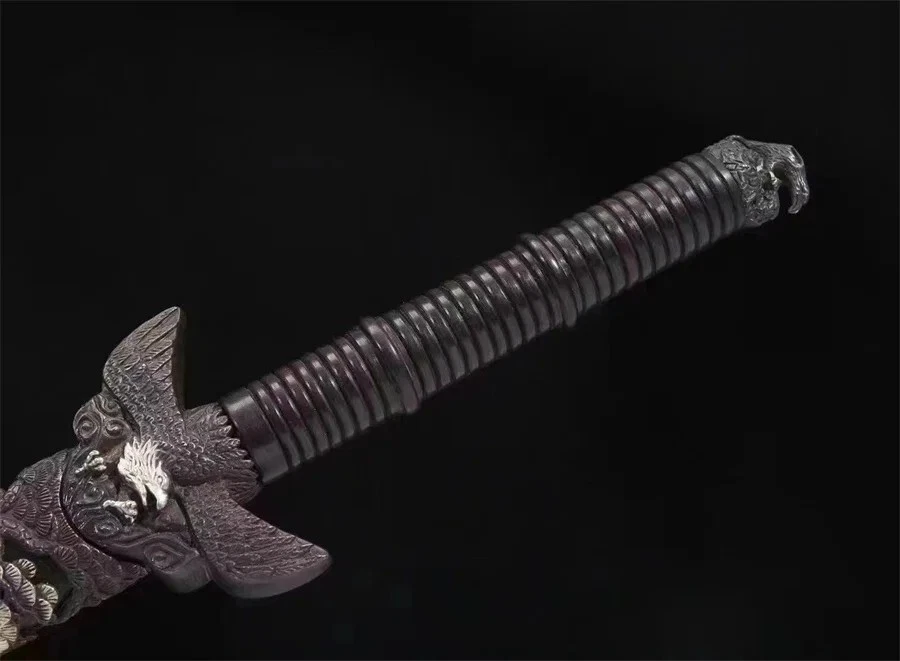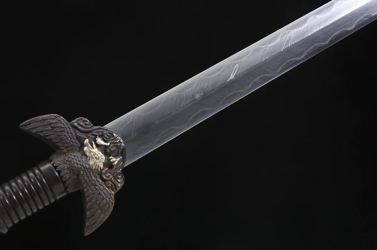 Equipped with a folded steel blade, which is a hammer-welded mixture of 1095 & 1060 high carbon steel, manganese spring steel, 1045 soft steel and many more smaller portions of other steels. This mixture is then folded multiple times to remove impurities, creating many hundreds of individual steel layers, finally producing arguably the best sword-making steel available.