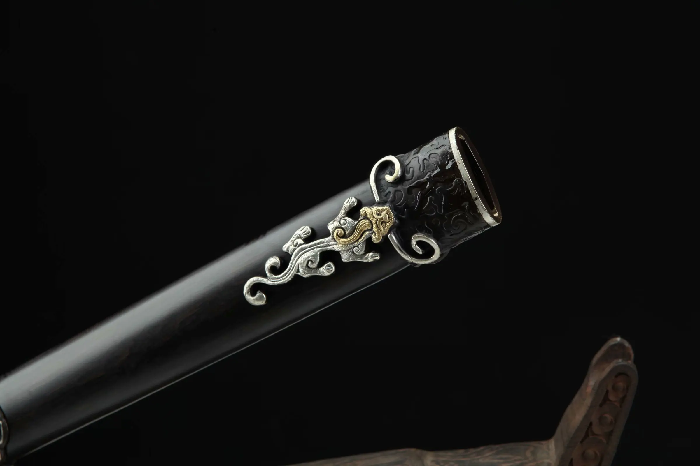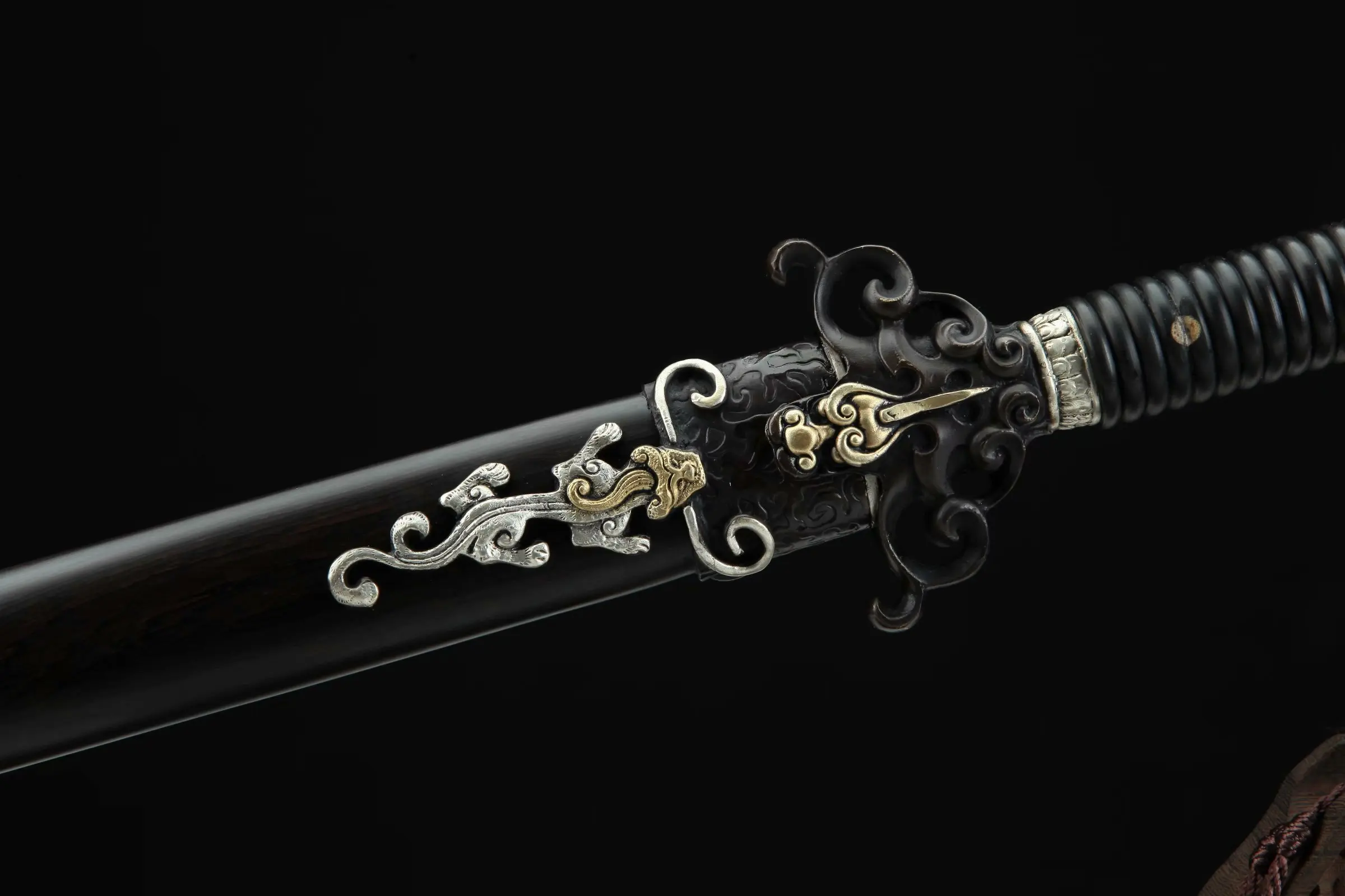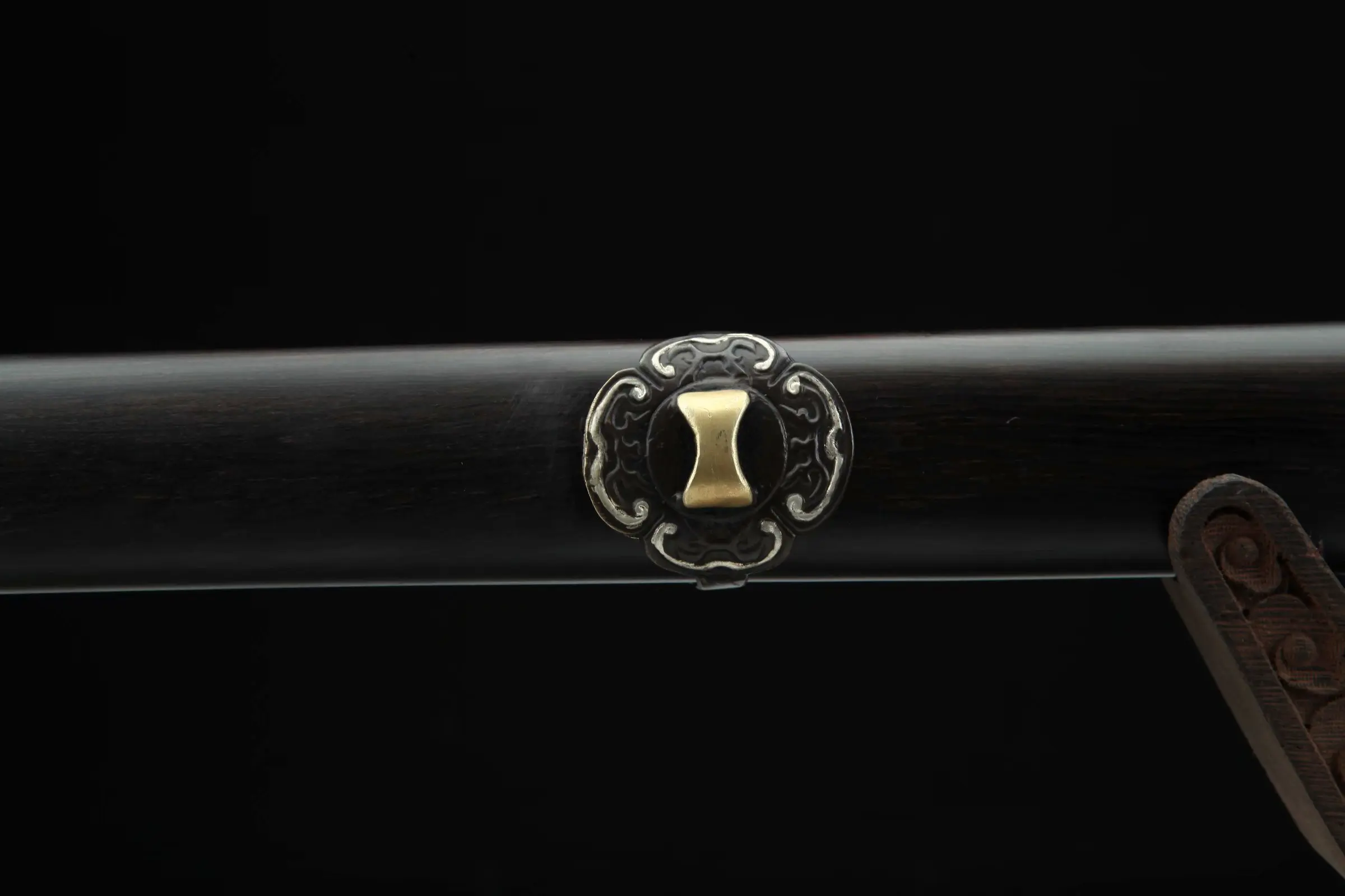 Completed with a solid Ebony hardwood scabbard, pure-copper fittings – with many decorations plated in real gold & silver, and a matching Ebony hardwood scabbard handle, forming a traditional, practical and effective hand-grip.