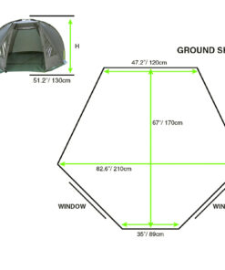 - Tent dimensions (LxWxH): 210x170x130cm.
