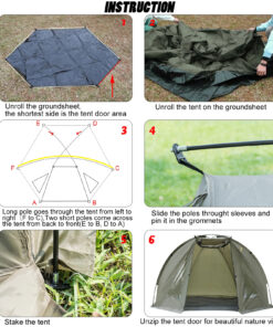 - Included: 1x tent for fishing; 10x tent pegs; 4x wind-ropes; 3x fiberglass tent poles 1x carry bag.