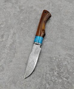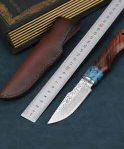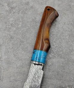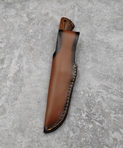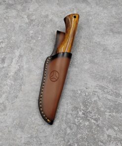 The handle is made from a premium Rosewood with decorative inlays, and finally housed in a hand carved and stitched genuine leather sheath.