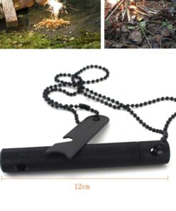 This lightweight yet strong metal alloy canister has a built-in button compass and safely houses a fire flint stone.