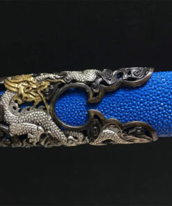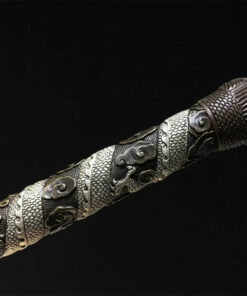 Completed with a hardwood wrapped with stingray-skin scabbard, along with copper & brass sword fittings – with many decorations plated in real gold & silver, and a hardwood, encased in pure-copper with silver plated dragon decoration handle, forming a traditional and effective hand-grip.