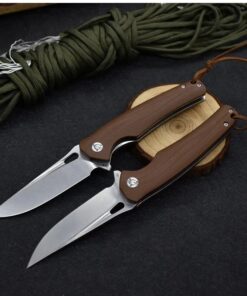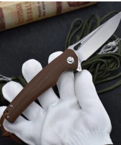 The construct is an advanced M390 steel blade, with characteristics of a hard and enduring sharp cutting edge. The blade is resilient against chipping & fracture and resists corrosion well, especially with the applied titanium plating. The blade extends into a strong lock blade knife position, and folds back into the recess of a tough G10 handle.