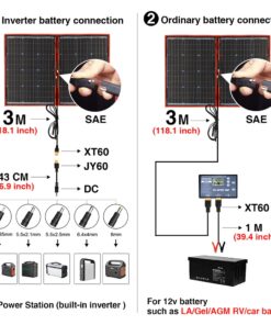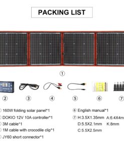 Package list (all options): 1x portable folding solar panel; 1x 12v/10A solar controller; 1x 3m power cable; 1x crocodile clip cable; 1x JY60 short connector; 7x laptop connectors; 1x English user manual.