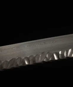 Further promoting perfection, is the very difficult process of clay-tempering the blade. This process precisely facilitates hardening of the blade’s edge, while leaving the blade’s core and spine softer and thus resilient. Definitely a marker of advanced Japanese sword-making technology and visibly identifiable on this Shinken sword blade.