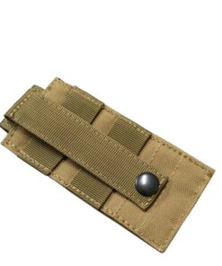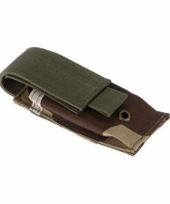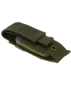 Features: Velcro enclosure; belt slot; MOLLE compatible; adaptable to torches, folding knives, multi-tools, Swiss army knives and more.