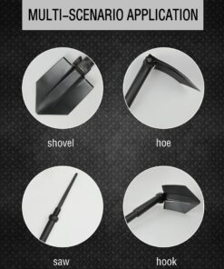 - Multi purpose shovel – shovel/hoe configurations; wood saw with screwdriver point.