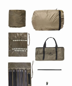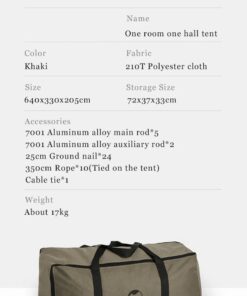 - Included: 1x inner tent; 1x fly sheet; 24x tent stakes; 7x tent poles; 10x tent ropes; 1x tent carry bag.