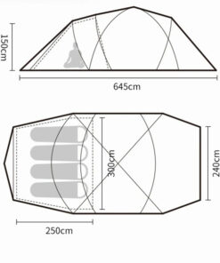 - Tent dimensions (LxWxH): 640 x 330 x 205cm.