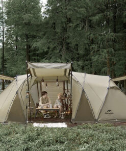 Not designed as a lightweight 4 person tent, but rather a tent used for accessible campsites, accessed from nearby with a vehicle. The overall 17 kg weight is worth it though, because this tent not only is high quality and practical in every-sense, but also looks great and blends into nature with a harmonious feel.