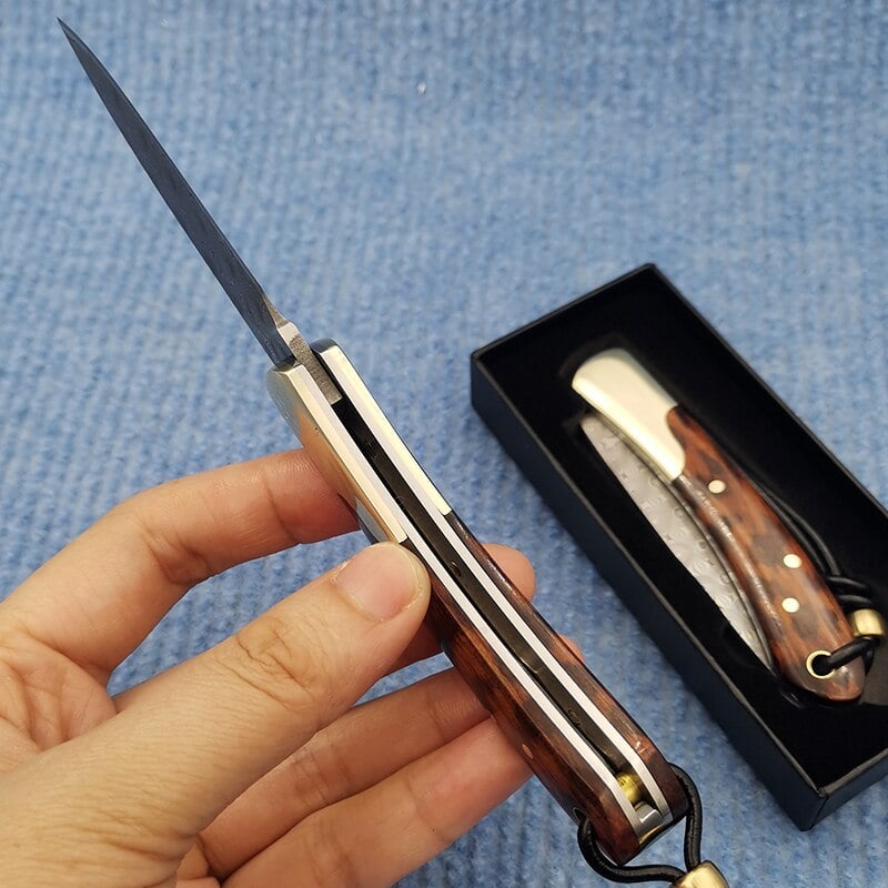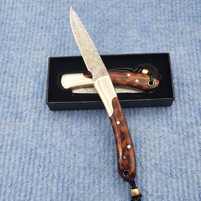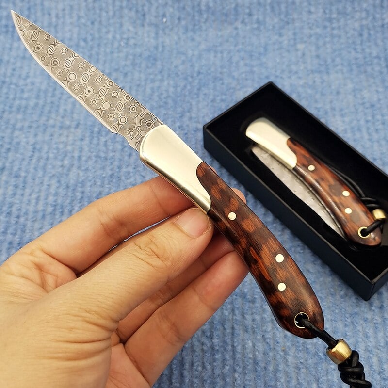Damascus steel is world renowned, producing unmatched razor sharp blades with excellent natural resilience. This folding knife is no exception, and will easily carve into wood, field dress small game and skin hides and fur.