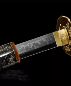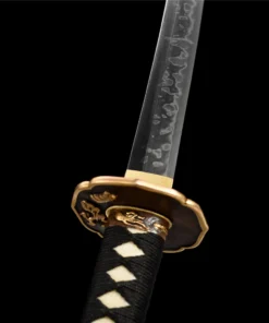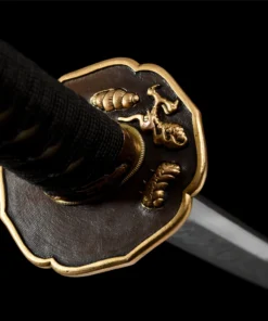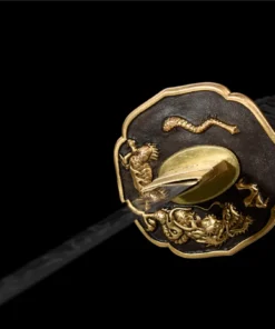 - Prominent golden dragon Katana fittings – powerfully infused warrior sword symbolism.