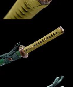 A distinctive, green Katana sword.