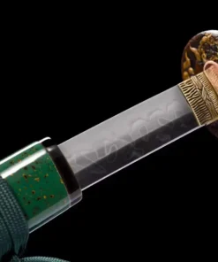 Possessing the color of green, which not only holds special significance in Japanese culture, but also widely cherished throughout the far east, this color symbolized new growth or beginnings, and luck. It was, and still is widely believed that owning such a green sword would bring fortune and prosperity to its owner and perhaps even more important than this, redemption and renewed form after crushing losses or defeats.
