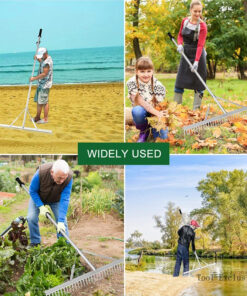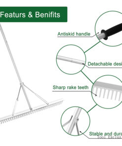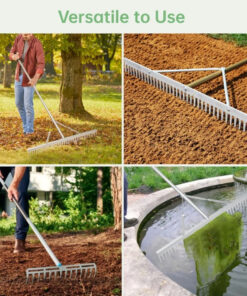Entirely constructed with aluminum alloy, which is a must for a garden rake of this size, this grass rake is kept as lightweight as possible. It’s specifically purposed as a grass rake for the efficient collection of lawn clippings, pine needles and is one of the best leaf rakes you can own.