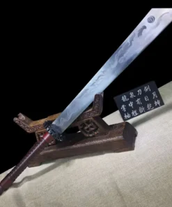 This battle functional Guandao can be used either as a 202cm long Chinese polearm, not too dissimilar from a Chinese halberd weapon in ranged chopping capability, or with the handle extension detached, a powerful chopping and lopping Chinese broadsword.