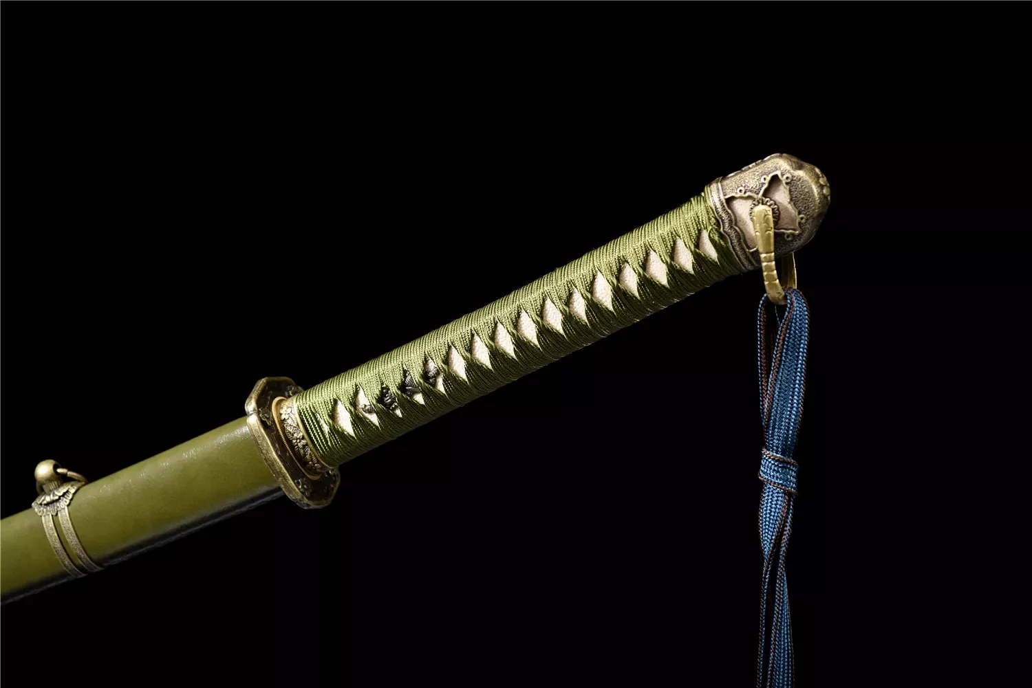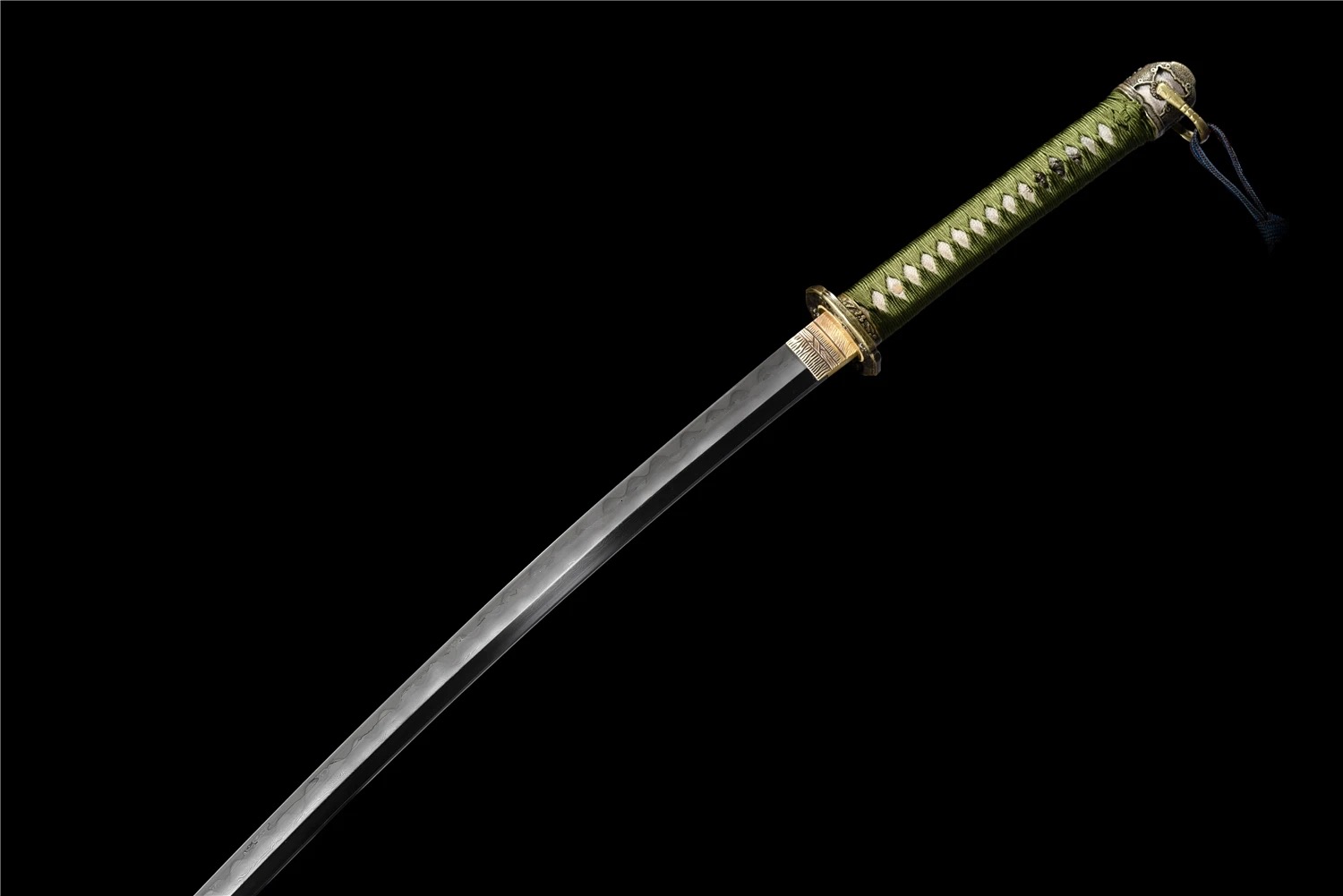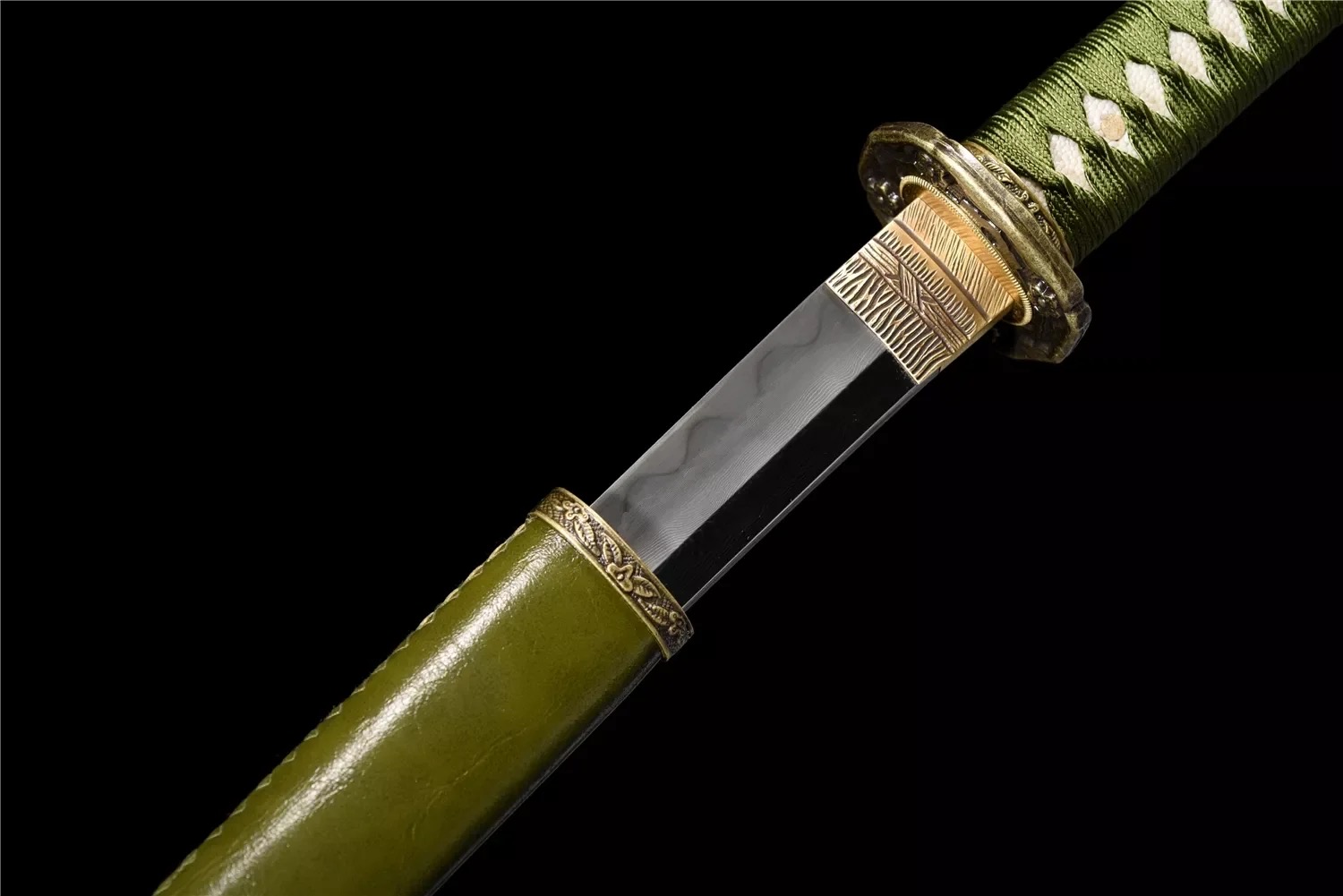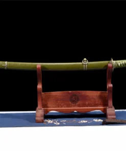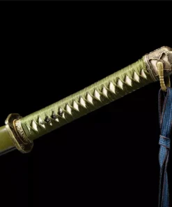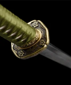 Equipped with an advanced Sanmai sword blade, which is a forge-weld laminate of two world-renowned sword-smithing steels. Hard T10 high carbon steel, and medium folded steel, which in this case is a special hammer-welded mixture of local self-refined steels – repeatedly folded.