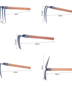 Specialized tool options include; 3 prong garden tool; garden claw tool; hand hoe cultivator; hand pick; hand mattock.