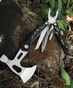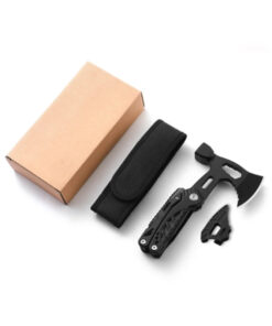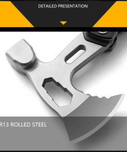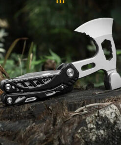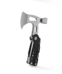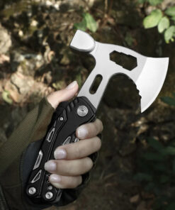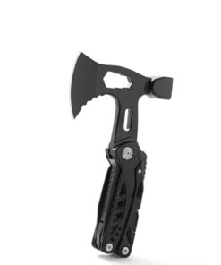 The hatchet multi tool construction is a 3Cr13 stainless steel. This modern steel has a high carbon content which produces hard tool working surfaces and lasting sharp edges, alloyed with stainless steel and other key metals, creating a rust resistant and resilient tool. All tools fold back into an aluminium alloy + ABS handle, which is both lightweight and very tough.