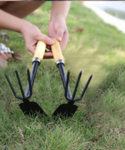 Purposed for single hand use, this rake hoe 3 prong garden tool is light enough to be used all-day-long without over-stressing the forearm. It is the perfect rake & grub tool or garden weeding hoe for home garden use.