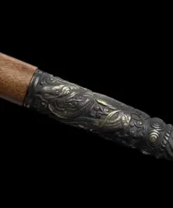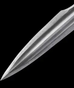 Equipped with a folded steel blade, which is a hammer-welded mixture of 1095 & 1060 high carbon steel, manganese spring steel, 1045 soft steel and many more smaller portions of other steels. This mixture is then folded multiple times to remove impurities, creating many hundreds of individual steel layers, finally producing arguably the best blade-making steel available.