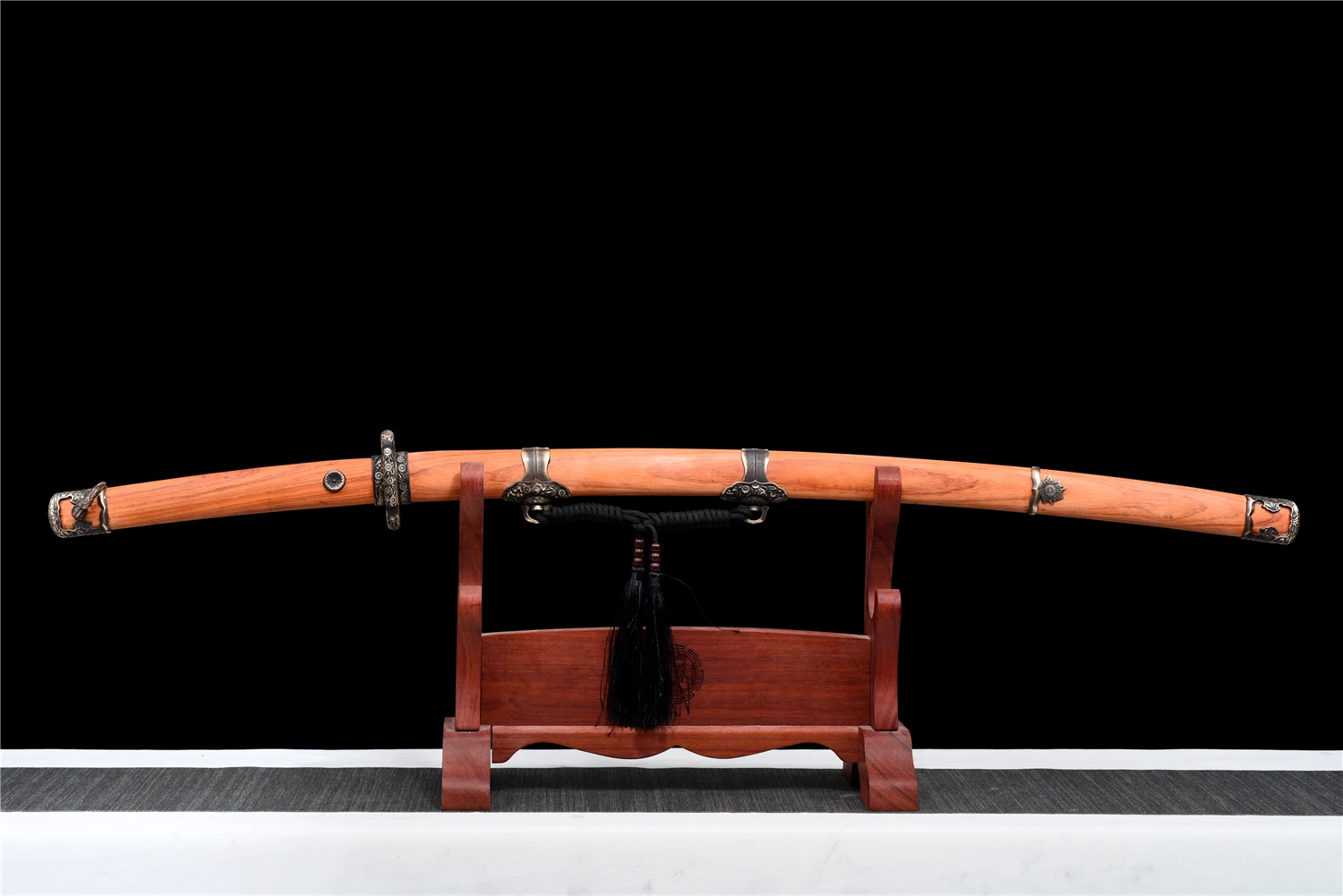 - Beautiful sword – completed with a natural hardwood handle & scabbard, and solid, battle functional sword fittings.