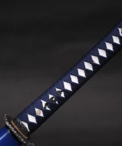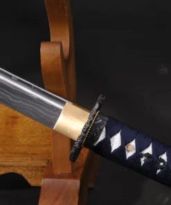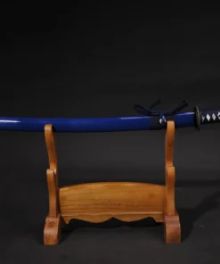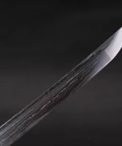 Equipped with a folded steel blade, which is a hammer-welded mixture of 1060 high carbon steel, manganese spring steel, 1045 soft steel and many more smaller portions of other steels. This mixture is then folded multiple times to remove impurities, creating many hundreds of individual steel layers, finally producing arguably the best sword-making steel available.