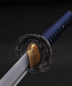 Purposed for the martial art sword practice of Iaido and for safe sword training, this full sized Japanese Samurai sword with its blunt Katana blade facilitates the safest possible sword to-and-from scabbard transitions, and general sword practice.