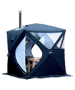 An outdoor winter tent with stove vent ticks all the boxes. Multi-layer material walls stop any wind penetration and full perimeter snow-skirts form a tight ground-seal. This alone makes a huge difference to occupant comfort.
