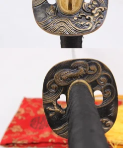 - Saya (scabbard) material: Lacquered hardwood, with dragon illustration.