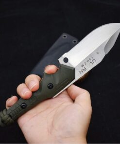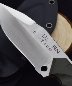 The construct is full tang blade made from modern 154CM steel. This steel has a very high carbon content, alloyed with stainless steel and other metals, creating a blade that is hard, holds a lasting sharp edge and resist chipping, fracture and rusting.