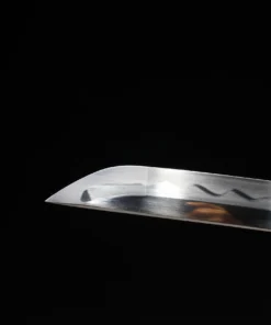 Further promoting perfection, is the very difficult process of clay-tempering the blade. This process precisely facilitates hardening of the blade’s edge, while leaving the blade’s core and spine softer and thus resilient. Definitely a marker of advanced Japanese sword-making technology and visibly identifiable on this Shinken sword blade.