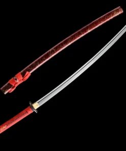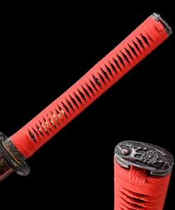The beautiful multi-colored, lacquered hardwood scabbard and quality sword fittings, complement the red sword theme nicely. And the hardwood, wrapped with synthetic leather & quality polyester cord form a traditional aesthetic and very effective Japanese Samurai handle grip.