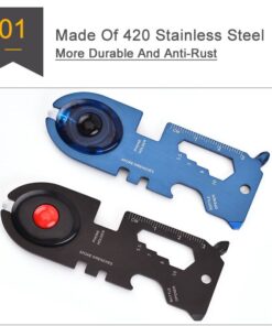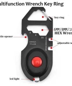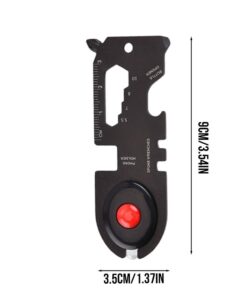 - Incorporated tools: LED torch; phone holder; spoke wrench; bottle opener; flat-head screwdriver; Phillips screwdriver; variable hex wrench; measurement ruler.