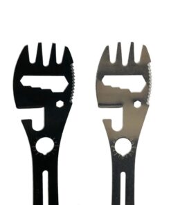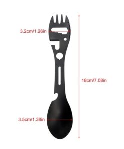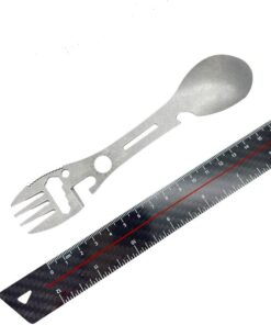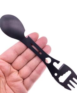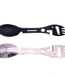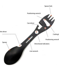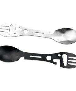 Incorporated tools: Spoon, fork, serrated knife blade, bottle opener, can opener, variable wrench.